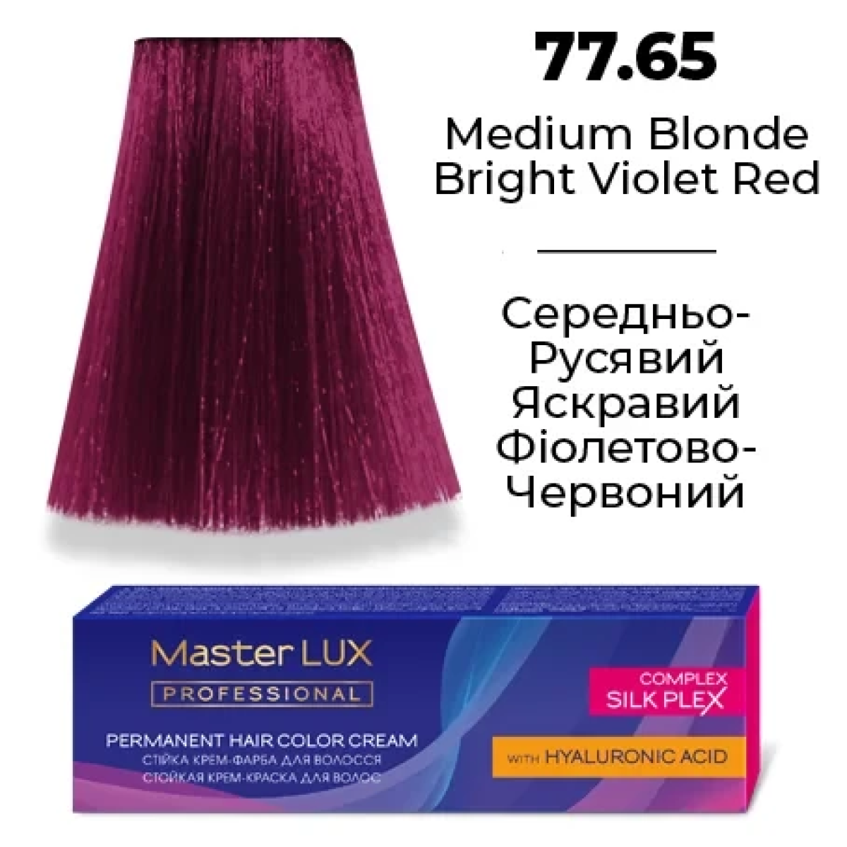Стійка крем-фарба для волосся 77.65 Середньо-русявий яскравий фіолетово-червоний Master LUX 60 мл
