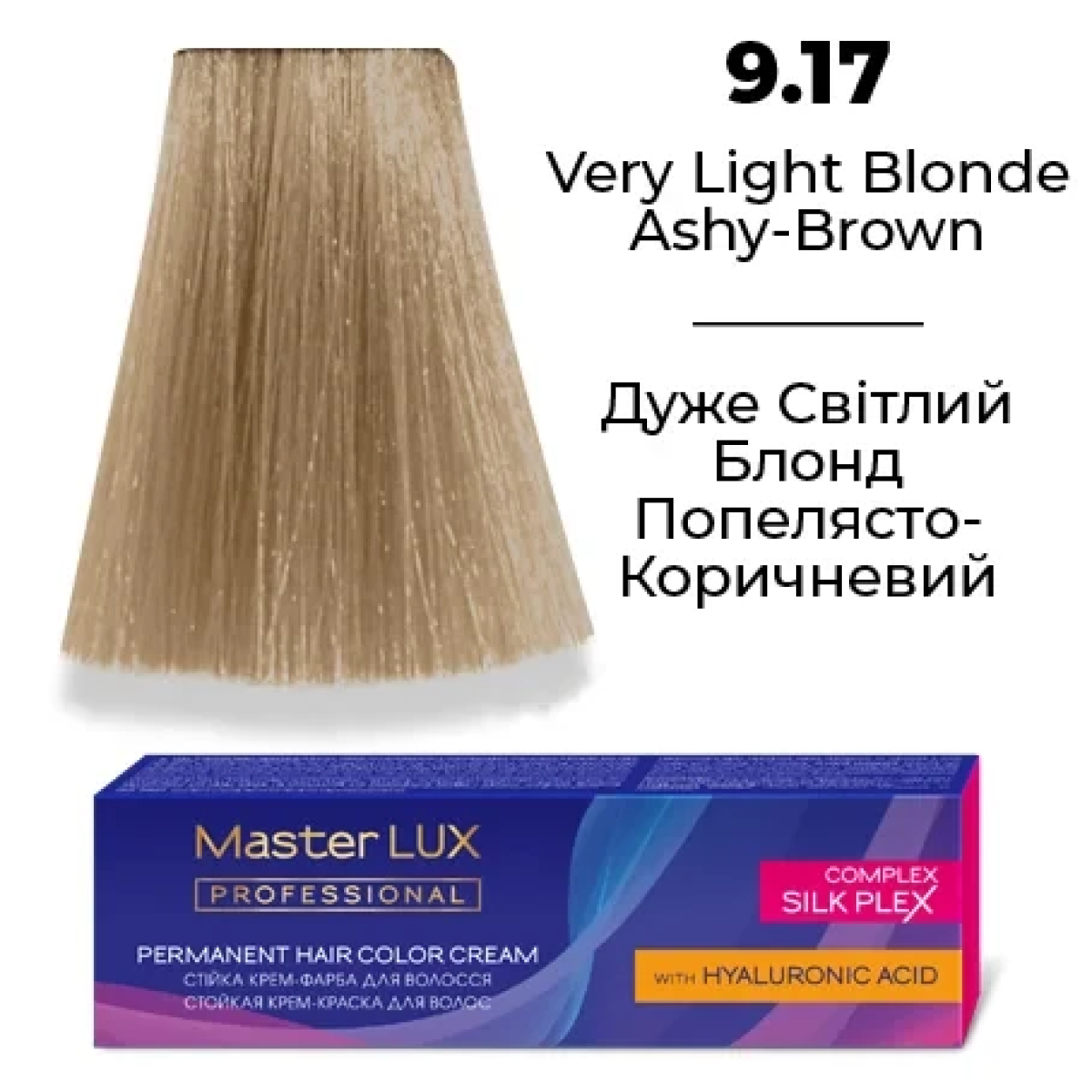 Стійка крем-фарба для волосся 9.17 Дуже Світлий Блонд Попелясто-Коричневий Master LUX 60 мл